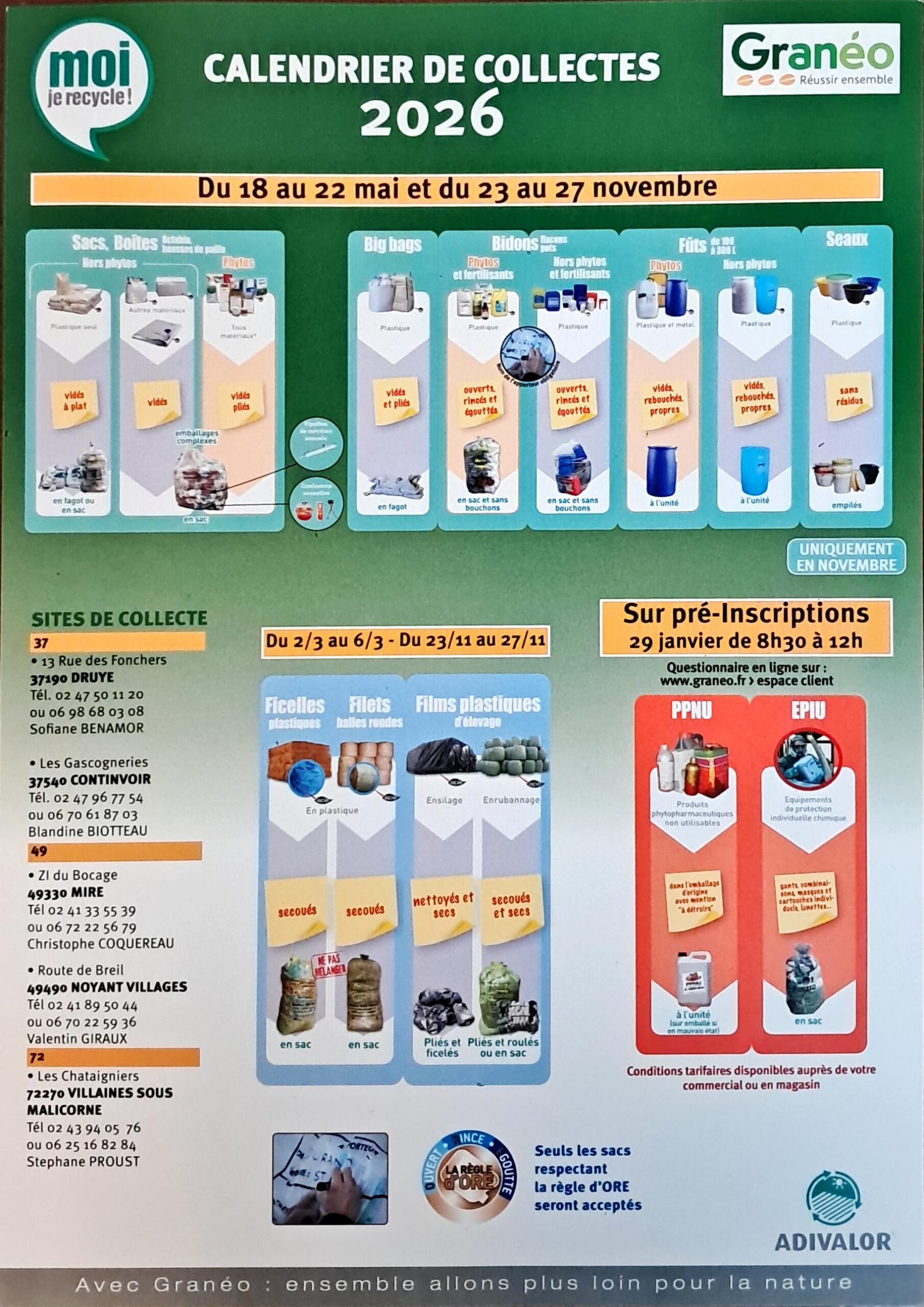 Calendrier collecte adivalor 2026
